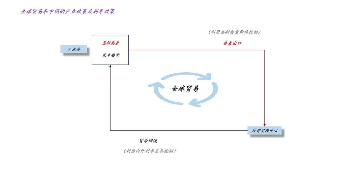 这其实是一种更高级的供给系统,它构造了一个要素池,实际出口要素包括大量的中上游垄断品,下游的商品只是一个载体。