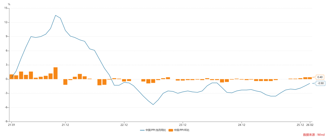 近期,中国的ppi持续修复,如下图所示,ppi环比已经连续5个月保持向上,并且2月份的读数已经走阔到了+0.40%。